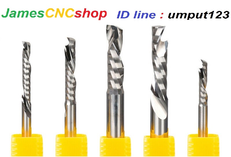 ดอกกัดฟันเดียว 3.175 mm ฟันยาว : เกลียวขวา Up cut Single Flute Spiral Carbide End Mill CNC Cutter Tool 3.175x12x3.175x38 mm